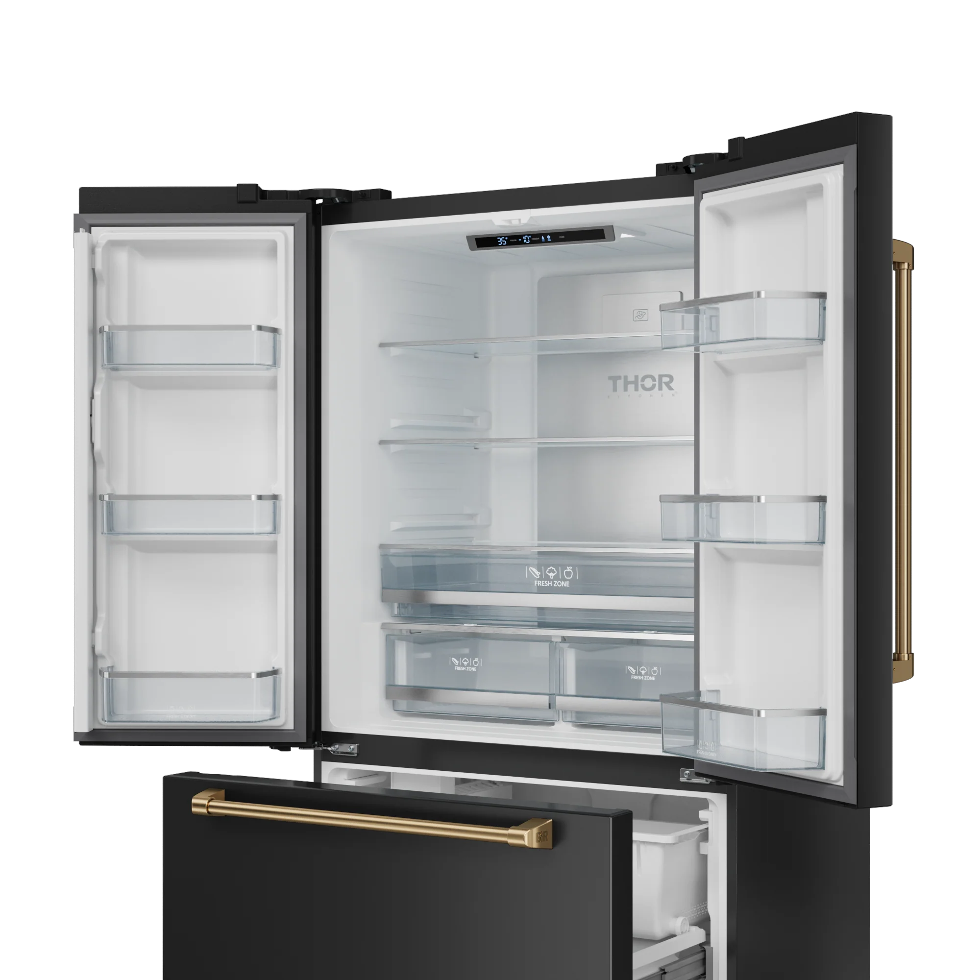 36 Inch 20.3 cu ft French Door Counter Depth Refrigerator with Ice Maker in Black/Bronze | Gordon Ramsay Series